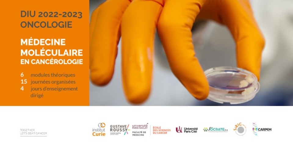 Le DIU de Médecine Moléculaire en Cancérologie 2022/2023, organisé par les Universités Paris Cité et Paris-Sud en partenariat avec l’Institut Curie, Gustave Roussy et le SIRIC CARPEM; est fait pour vous.