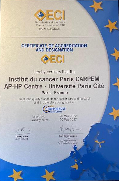 The SIRIC CARPEM, which represents the translational research part of the Institute, is very proud of this European recognition of excellence in oncology.
